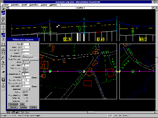 - Placement et déplacement des supports avec la souris, sur le profil ou la bande planimétrique.
