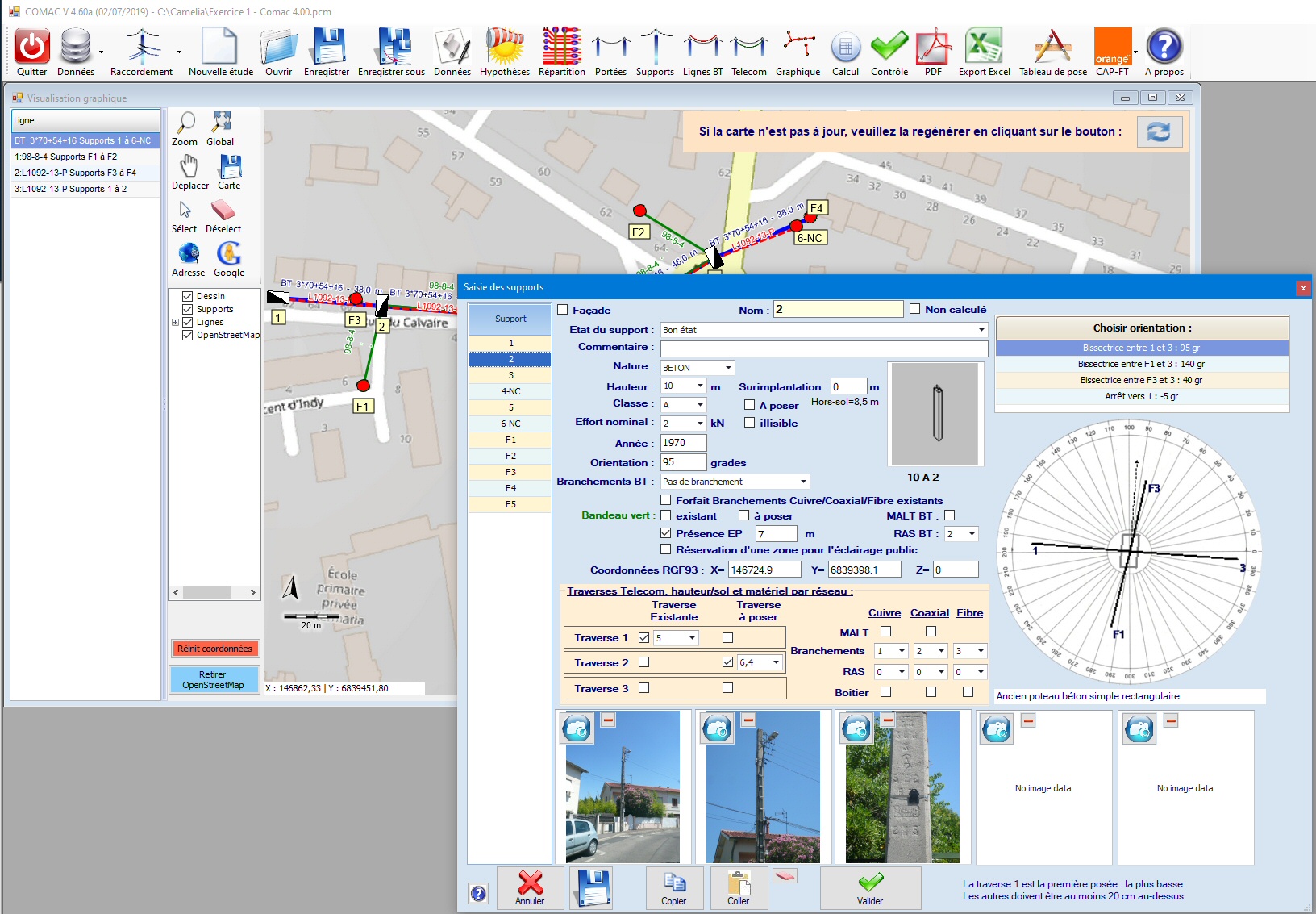 Le logiciel COMAC permet d’étudier un support d’appui commun entre des lignes d’un réseau électrique Basse Tension (BT), des lignes Téléphoniques/Vidéocommunication et/ou de Fibre optique.